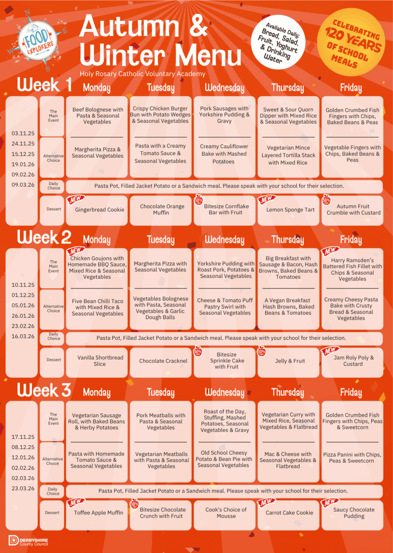 Please contact the school if you are unsure about the arrangements for meal times at Holy Rosary.